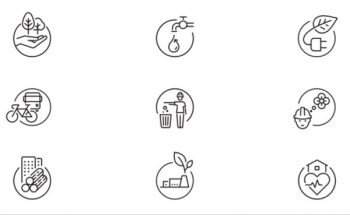 Ikonene symboliserer de ni emnene i BREEAM-NOR og kan brukes for å kommunisere dokumenterte kvaliteter i BREEAM-NOR-bygg til sluttbruker.
